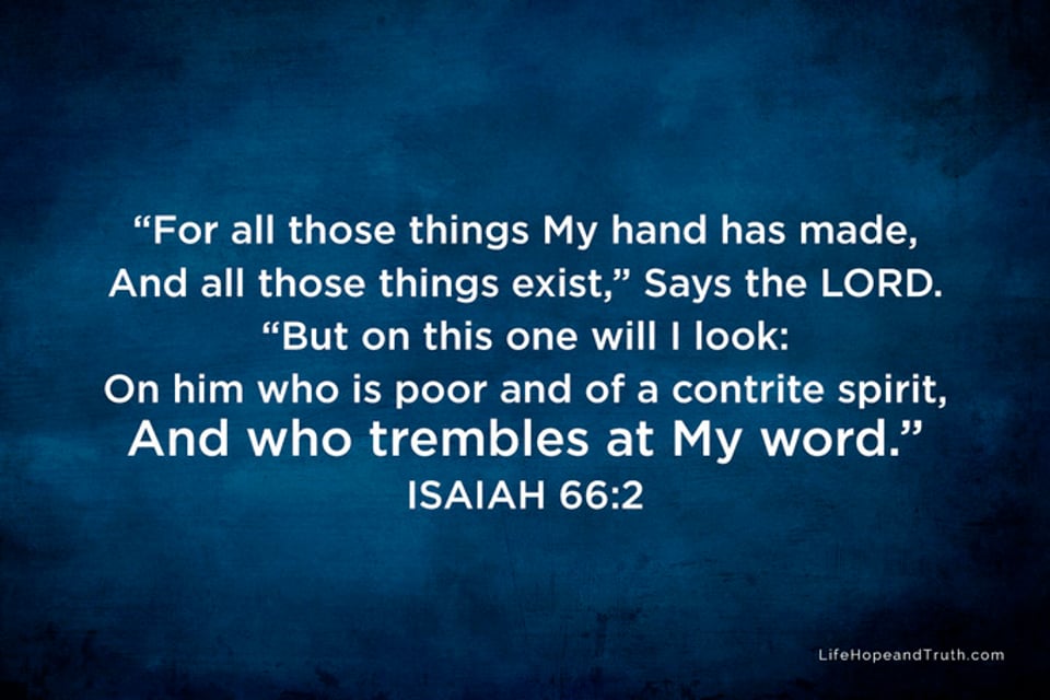 Isaiah 66:2 adds another important fact about meekness: “‘For all those things My hand has made, and all those things exist,’ says the LORD. ‘But on this one will I look: On him who is poor and of a contrite spirit, and who trembles at My word.’”